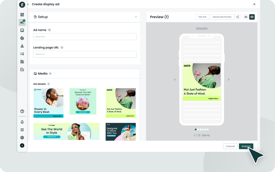 Custom creatives, asset tools, and brand safety features optimize campaigns and boost results across the funnel.
